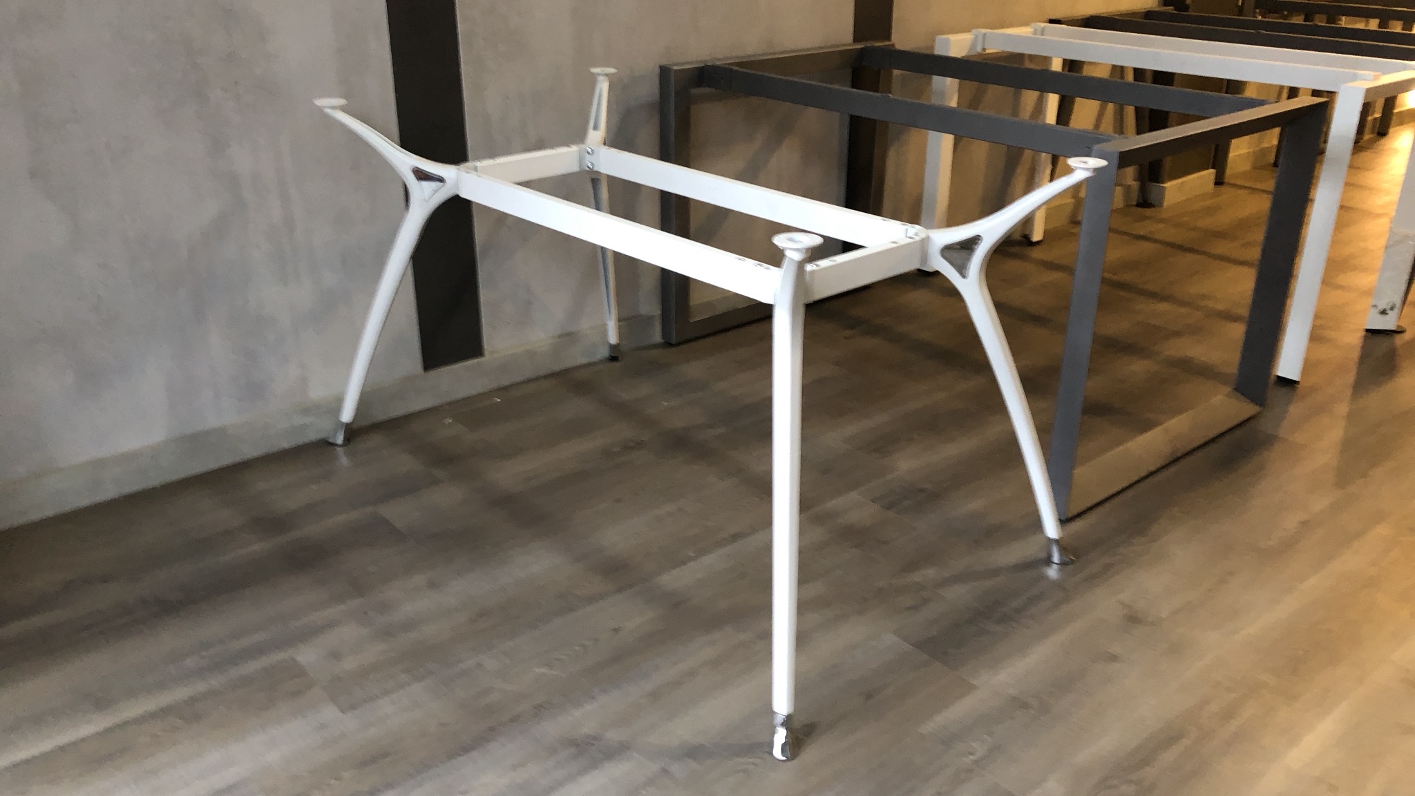 Khung bàn làm việc hợp kim nhôm đúc được sử dụng làm bàn làm việc trong không gian hiện đại.