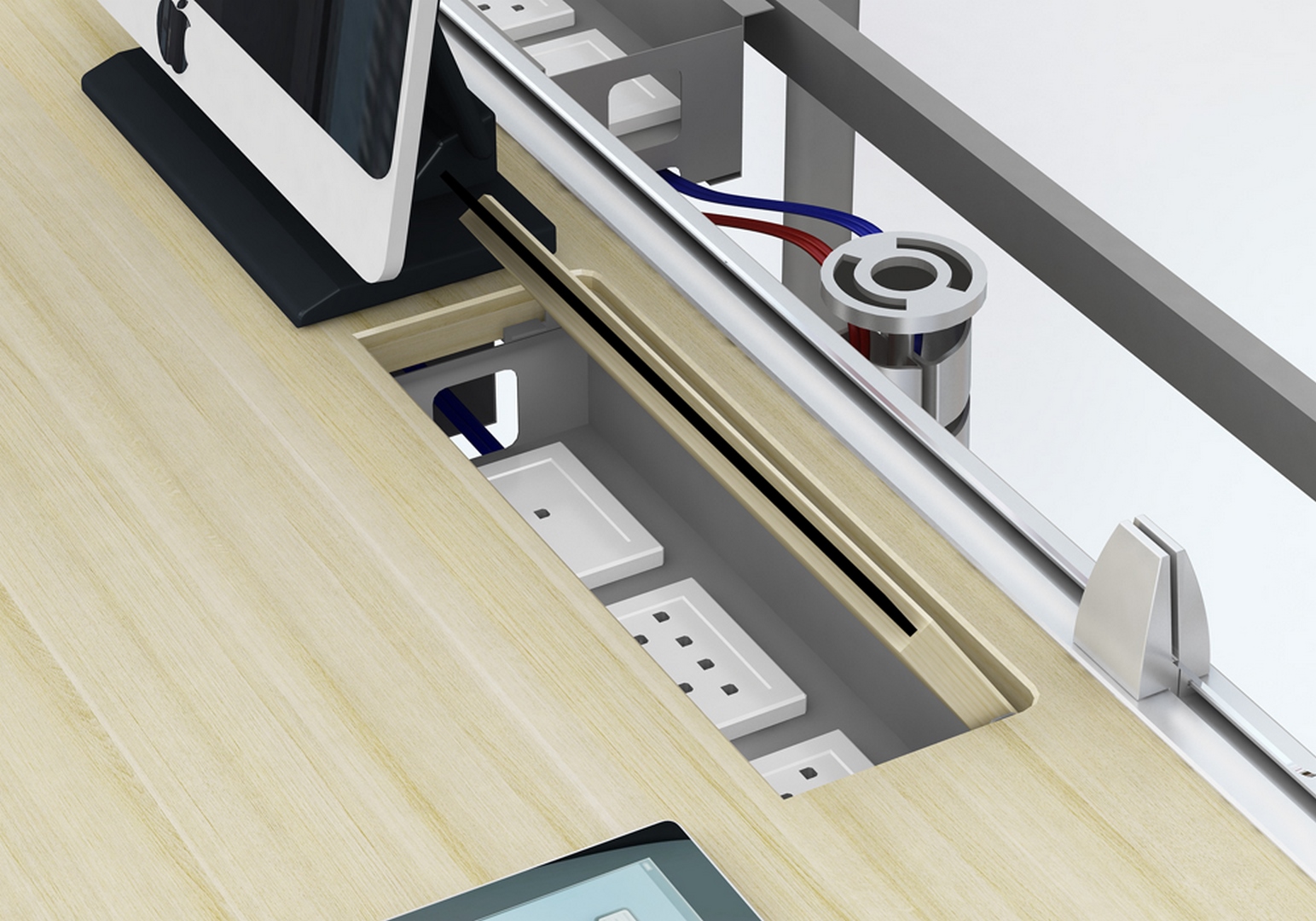 Máng điện 2/3/4 khe một bên gắn ổ điện/mạng/điện thoại dạng treo, tôn dày 1mm, sơn tĩnh điện. Mục đích sử dụng: Khe máng điệm âm bàn làm việc